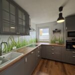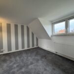 Auf ca. 100 m² Wohnflächen verteilen sich 4,5 Zimmer, ein sehr schönes Bad, ein WC sowie eine Küche, die mit modernen Einbaumöbeln und Geräten ausgestattet worden ist. Im Erdgeschoss befinden sich das große Wohn.-und Esszimmer mit Zugang zum großen Garten, auf die schön angelegte Terrasse, das top moderne Bad mit Regendusche sowie die bereits erwähnte, stylische Küche. Über eine geschwungene Holztreppe gelangt man in das Dachgeschoss, wo sich 3 weitere Zimmer unterschiedlicher Größe, ein „begehbarer Kleiderschrank“ sowie ein WC befinden.